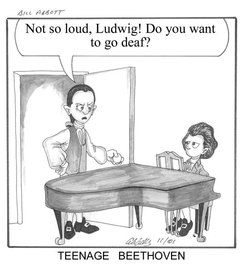 He finally locates the origin and finds it is coming from a grave with a headstone that reads: "Ludwig van Beethoven, 1770-1827."